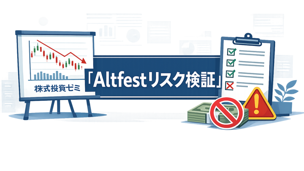 Altfest(アルトフェスト)の日本株投資ゼミは公式情報不明でリスク高。評判の出金拒否声や無登録助言の危険を検証。SNS勧誘の典型に注意を。