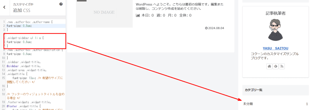 新着記事やカテゴリウィジェットの文字サイズ変更CSS