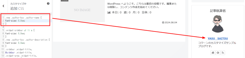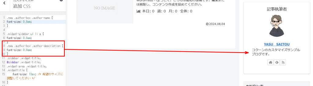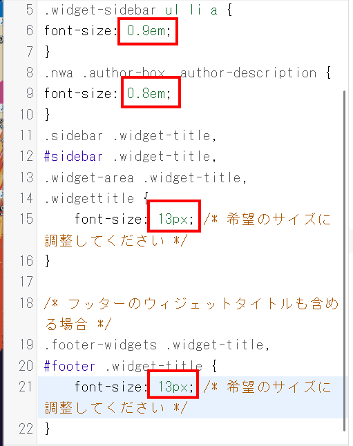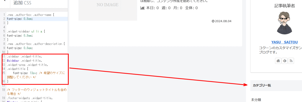 コクーンのサイドバーの文字サイズの変更の方法はCSSを利用します。