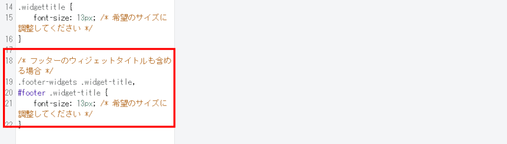 「ワードプレスのウィジェットのタイトルの文字サイズを変更したい。」