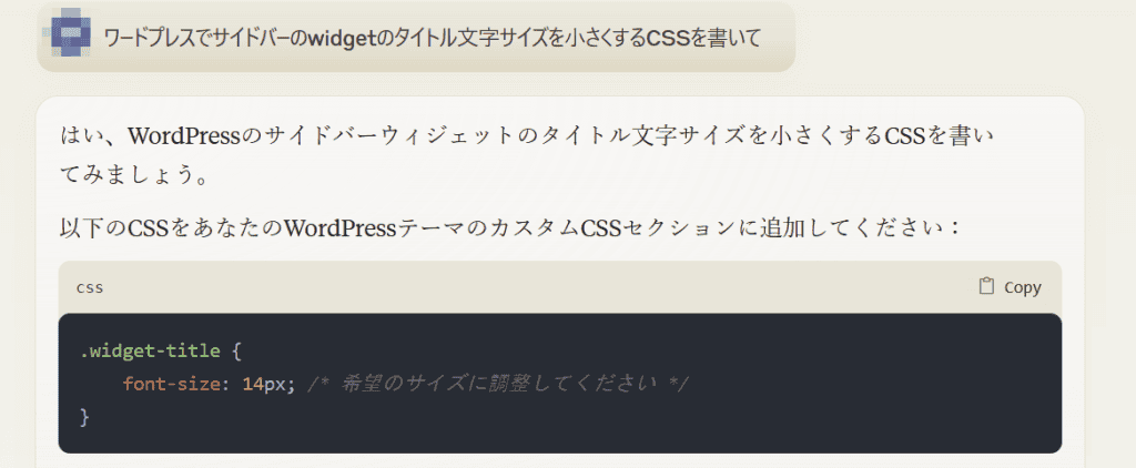 「ワードプレスでサイドバーのwidgetのタイトル文字サイズを小さくするCSSを書いて」