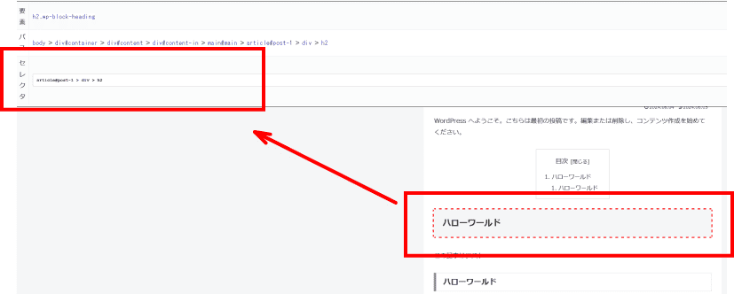 そして 記事中の 見出し2の部分をクリックします。