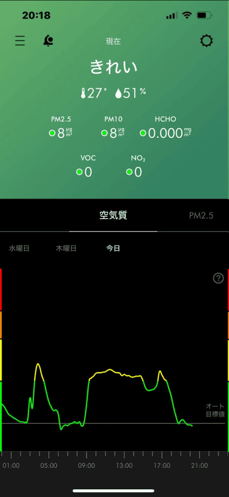 具体的にはPM2.5が平均して15〜20程度下がった印象です(もちろん日によって多少の変動はありますが)。