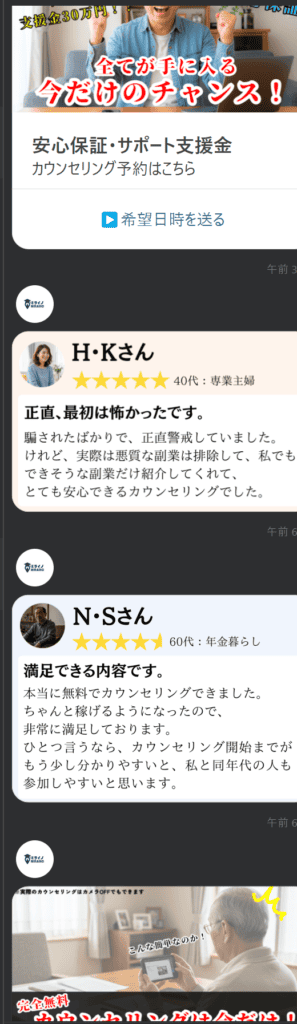 しかし、LINEを見ても 信じれる要素がゼロ…。