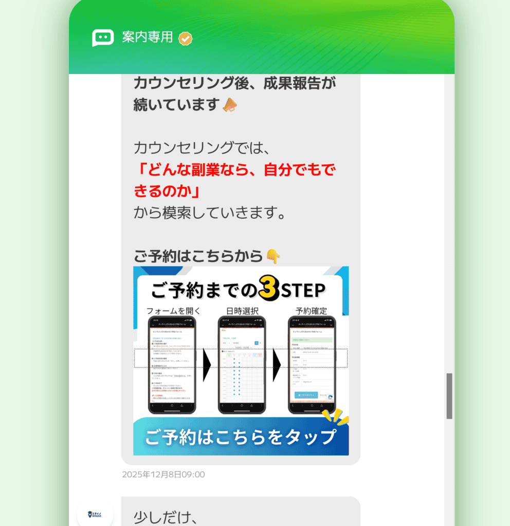 副業の相談・案件チェックは、このLINEに集約しています。